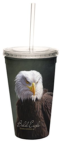 Tree-Free Greetings 35696 Jeremy Paul Bald Eagle Double-Walled Cool Cup with Reusable Straw, 16-Ounce