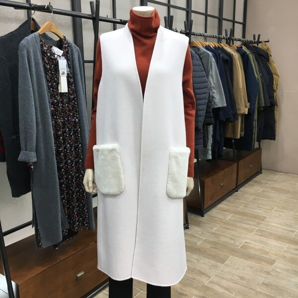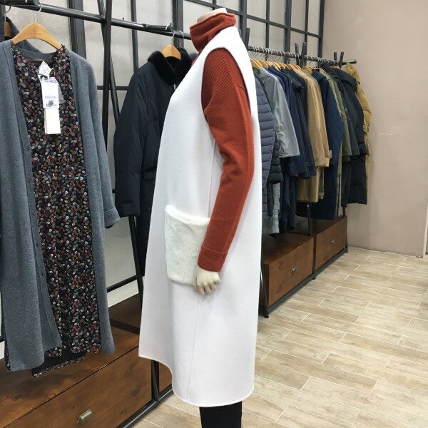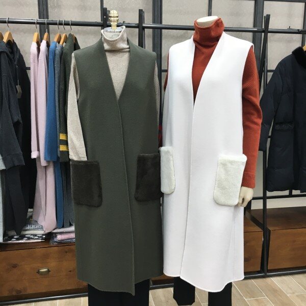 핸드메이드 코트의 느낌의 모 100% 조끼 제품이에요. 고급지면서도 우아한 느낌이 드는 제품인데요. 요제품 하나면 걸치셔도 코디의 퀄리티가 높아지시고 이쁜만큼 가을 겨울에 입으시면 자연스레 보온성도높아집니다. 보자마자 이쁘다 생각이 든 제품이라 꼼꼼히 살펴보니 좋은제품 이쁜 제품은 손이 자주 가시는데 코드같은 제품은 추운날씨에 목뒷부분 택같이 거슬릴때기 있더라구요! 그래서 요제품은 호주머니쪽에 택을 달아 까끌거림 없게 마무리하였고! 가장 큰 포인트 부분은 보슬보슬한 토끼털100% 로 포켓에 포인트를 주어 퀄리티를 더 높여주었답니다. 니트나 블라우스! 팬츠에 툭툭 걸치시면 좋구용. 어디에 입어도 고급진 분위기가 느껴지는 조끼 제품이니 꼭 하나 소장하시길 바랄께요~ 다크브라운 제품은 약간 어두운 카키느낌이 드는 제품이니 구매시 참고 부탁드려요 ! 총장길이는 55사이즈 기준으로 114cm 입니다.