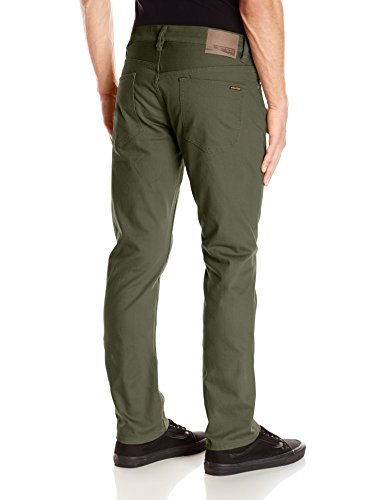 -. Feature : Slim-fit twill pant with regular rise featuring V-shaped belt loops and five-pocket styling / Concealed cell phone pocket / Zip fly with button
