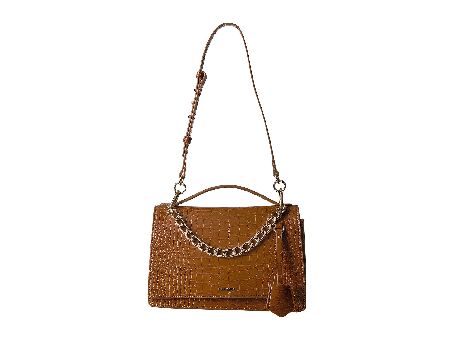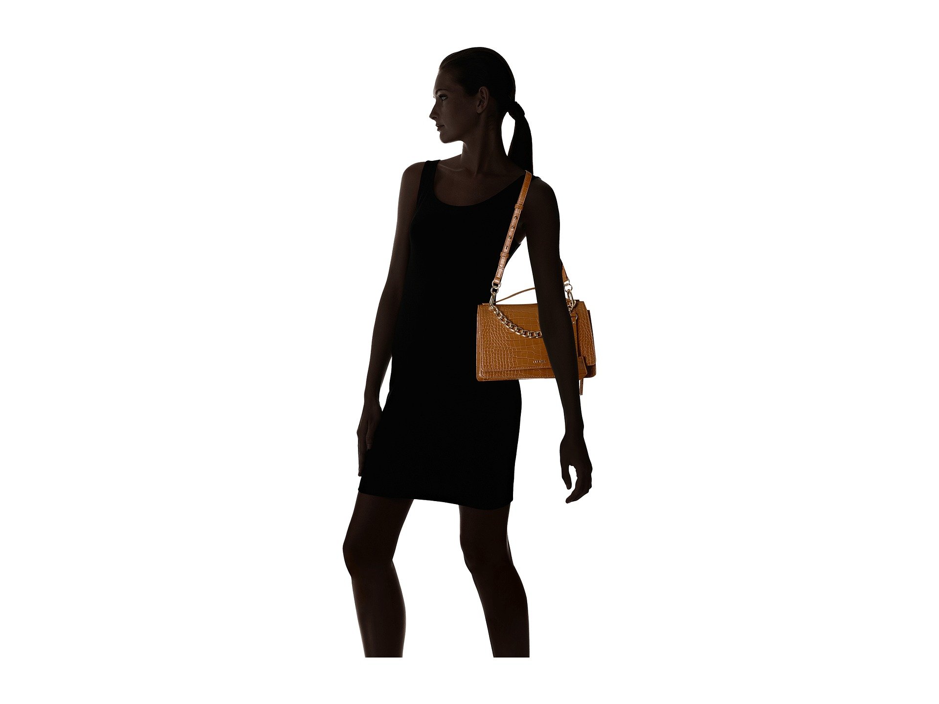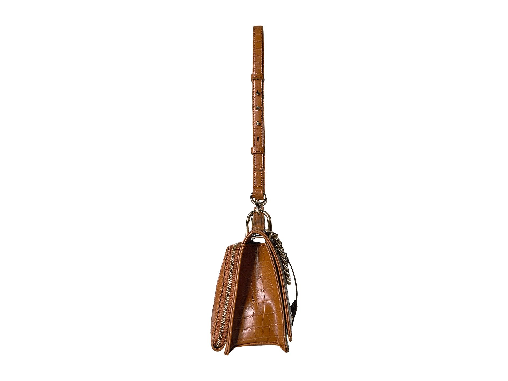 | Product Information SKU: #8898897Simple, yet chic!Made of synthetic leather.Snap-flap closure. Shoulder strap with chain detail.Exterior features brand hardware at the front. Interior features one zip and two slip pockets. Imported.This product may have a manufacturer's warranty. Please visit the manufacturer's website or contact us at warranty@support.zappos.com for full manufacturer warranty details.Measurements: Bottom Width: 10 in Depth: 2 3?4 in Height: 7 in Strap Length: 34 in Strap Drop: 13 1?2 in Weight: 15 oz |