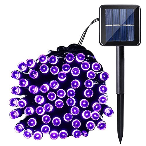 Qedertek Solar String Lights, 33ft 100 LED Waterproof Outdoor Decoration Lighting for Indoor/Outdoor, Patio, Lawn, Garden, Holidays, Christmas, Halloween Decorations (Purple)