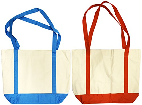 Set of 2 Quality Thick Woven and Lined Velcro Canvas Bags! 2 Bright Colors - 17" X 13.25" X 5" - Perfect for Arts and Crafts, Beach Bags, Reusable Grocery Bags, Parties, Projects and More!