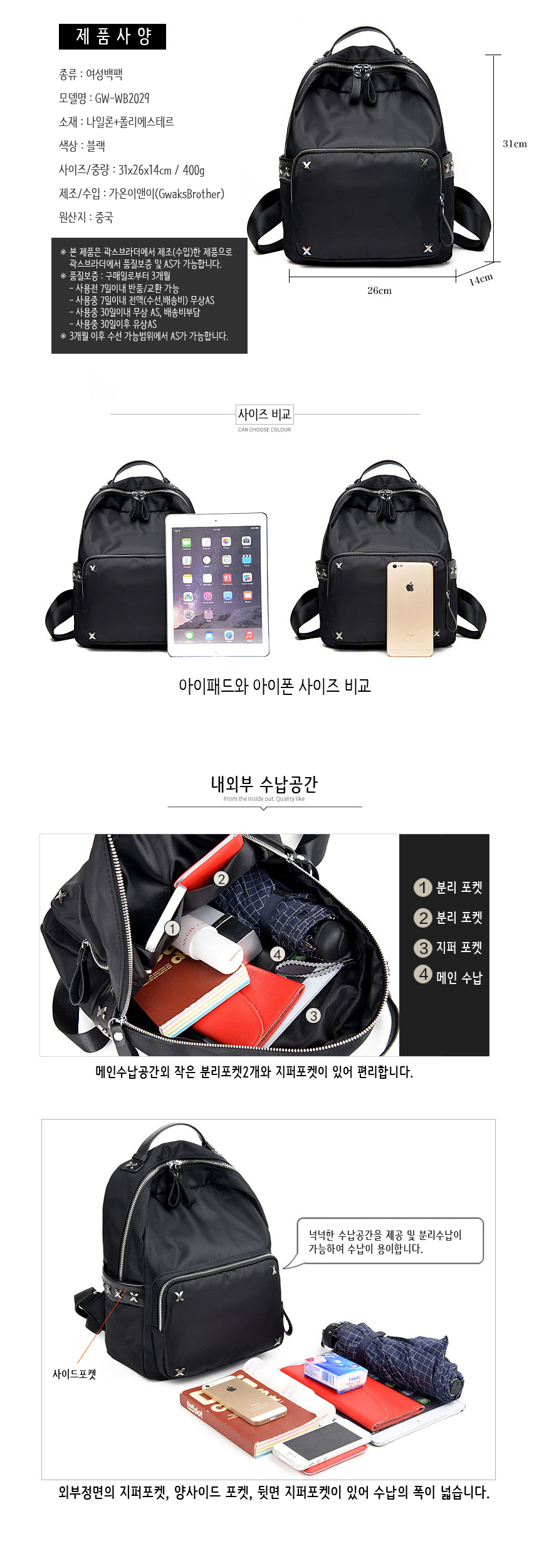 Black Backpack GW-WB2029 Lightweight, easy to store, nylon bag suit women