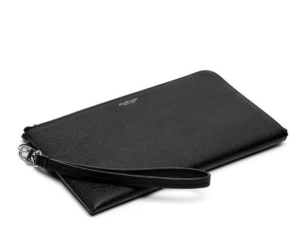 블랙 컬러 바탕에 화이트 로고 불박과 글로시한 에지 페인트로 모던한 감성을 주는 클러치 입니다.