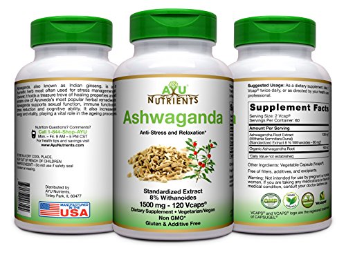 -. Title : AyuNutrients Ashwagandha -1500 mg (8% Withanoids)| Made in USA | 120 Veggie Capsules | Supports Cardiovascular,Libido,Joint Function,Cognitive,Relieve Stress,healthy glucose metabolism & Lipid lavels