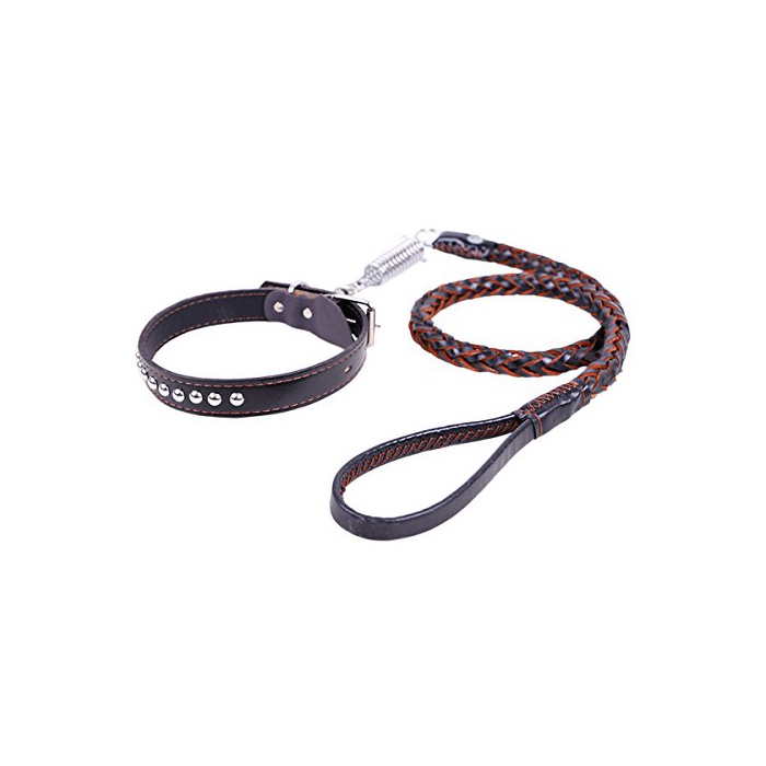 MoreFarther 리드,목걸이 세트 중형견 대형견 견인 로프 견인 리드 누메가죽 레더 잡아끌어 방지 미끄럼방지 강건 심플한 타입 고급감 조절 가능 장착 간단 아키타견,섶나무견,