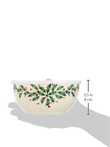 Studio : Lenox Publisher : Lenox Binding : Kitchen Product Description Introduced in 1974, the Lenox Holiday pattern became an instant classic, growing in popularity to become the #1 seasonal dinnerware in America. The iconic holly design combines with the legendary quality that only Lenox can offer to create a collection that has transcended generations to help make the most special time of year even more memorable. Best of all, this legendary collection is created by Lenox, America’s first name in home entertaining, known around the world for offering a unique combination of design artistry and superior quality for over 125 years. The confidence that Lenox has in the unmatched durability of every product they offer is backed by a lifetime breakage replacement policy to guarantee many years of enjoyment to each customer. Serve seasonal favorites then store some for later with this versatile entertaining accessory, crafted of Lenox porcelain and including a securely-fitting plastic lid. Get at least one for yourself and some to give as perfect holiday gifts! 0