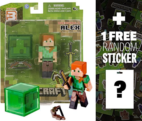 -. Title : Overworld Alex ~2.6" Minecraft Mini Fully Articulated Action Figure Pack + 1 FREE Official Minecraft Mini-Sticker Sheet Bundle