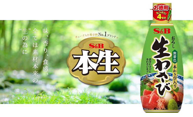 Flavor recommendation "Grated raw wasabi" It is the virtue size for 4 pieces. One-touch cap that can be opened and closed with one hand is adopted. Enjoy the natural flavor of wasabi, pleasant pungent taste, grassy wasabi with rich fragrance. ● Raw materials Horseradish, horse wasabi, corn oil, sugar, salt, starch, sorbit, cellulose, fragrance, acidulant, thickener (xanthan) |