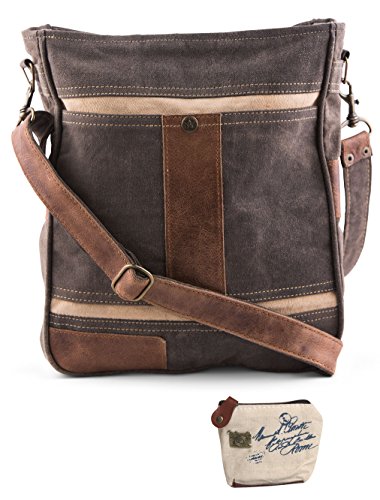 -. Brand : Mona B -. Color : Tan, Khaki, Brown -. Department : womens -. EAN : 0847814051121 -. Feature : Made from upcycled canvas tarps and tents. Create, Care, Conserve. / Measures 10" W x 13" H x 3" D with 24" Adjustable strap and zipper top / Genuine leather accents / Each bag is truly original since they are made from upcycled materials that have traveled the world / Includes small zippered coin purse -. Model : MB-M-3605-CP -. ProductGroup : Apparel -. ProductTypeName : LUGGAGE -. Size : Large -. Title : Mona B Upcycled Cameron Canvas & Leather Crossbody Bag with Coin Purse -. UPC : 847814051121