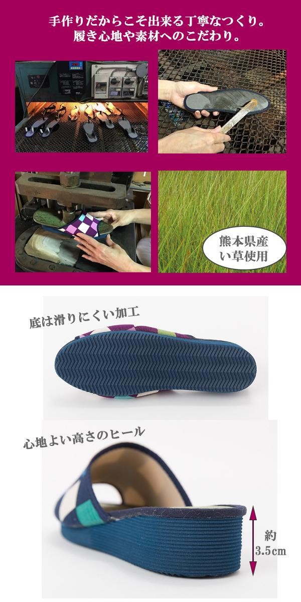 | 素材・材質 | 甲材:ポリエステル、綿、ポリウレタン 底材:い草、EVA |