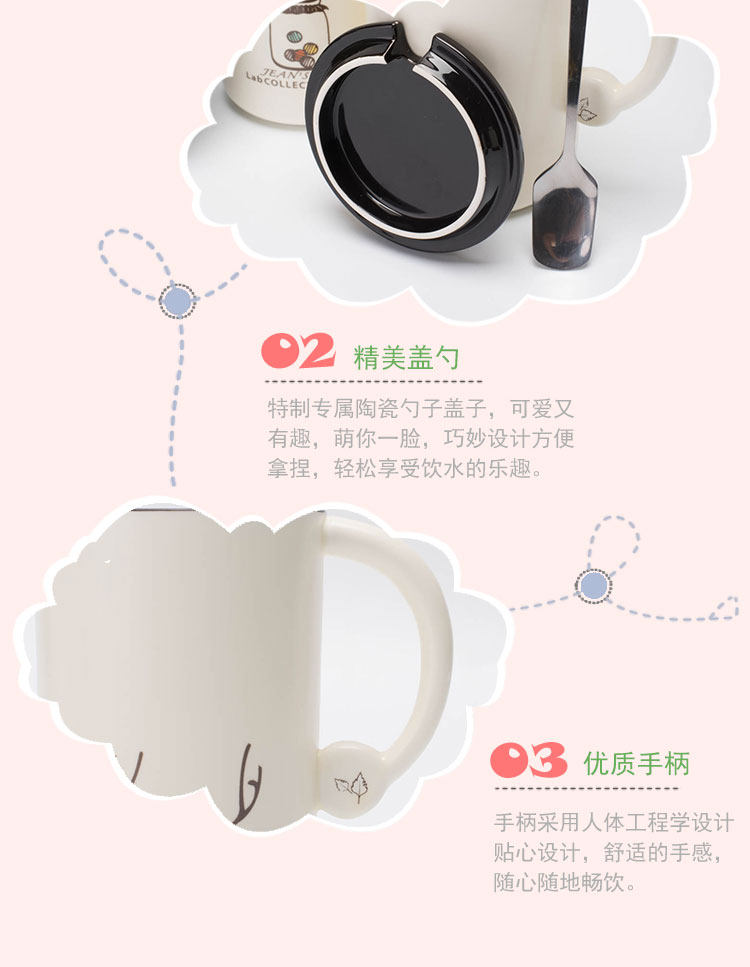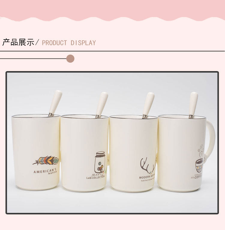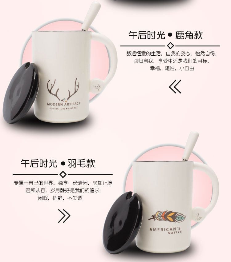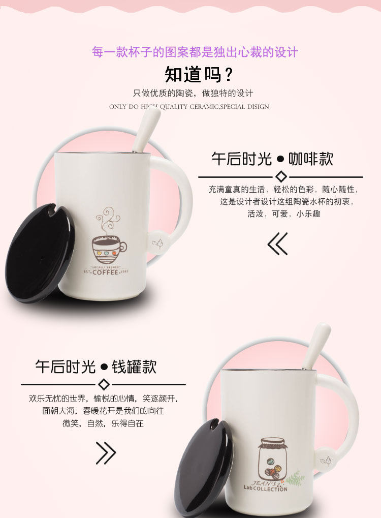 创意陶瓷马克杯咖啡杯办公室水杯早餐牛奶杯带盖带勺子简约