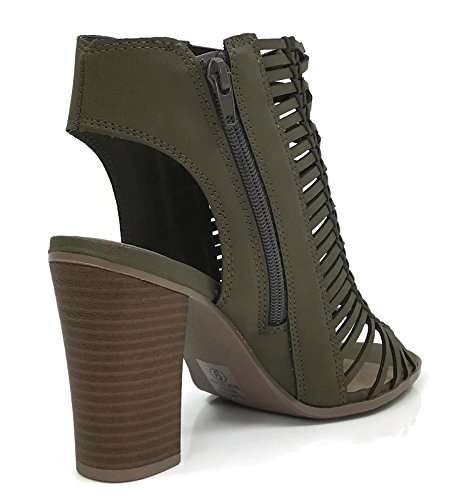 Product Description Women's open back bootie sandal with front cut out design. Side zipper gives at strappy summer look. Peep toe design with mid heel heigh 4" block heel. Imported. 0