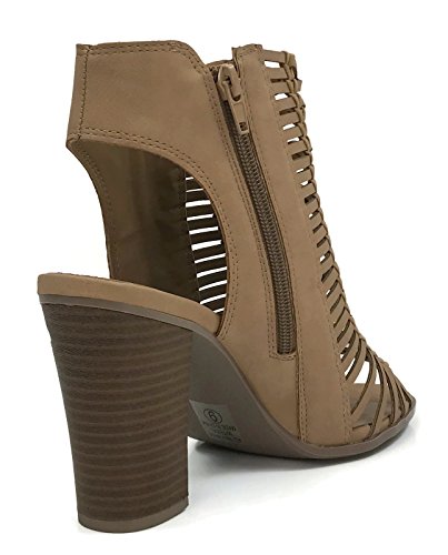 (Delicious Fashion)/Women's/Sandals/DIRECT FROM USA/Delicious Fashion Open Toe Cut Out Sandal With Side Zip Closure and Open Stacked Chunky Heel