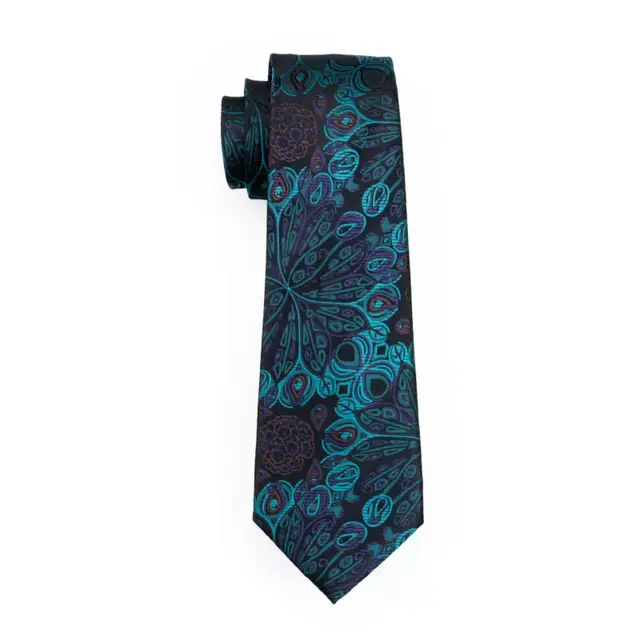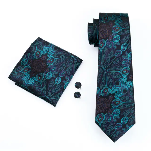 LS-612 새로운 남성 넥타이 100% 실크 블루 꽃 클래식 자카드 짠 타이 + 손수건 + 커프스 세트 정장 웨딩 비즈니스 파티