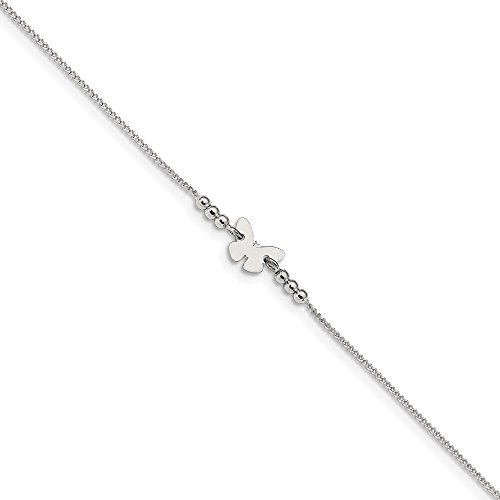 Solid 925 Sterling Silver Polished 9in with 1in ext Butterfly Anklet 9" (1mm)