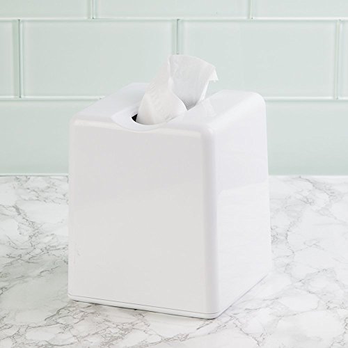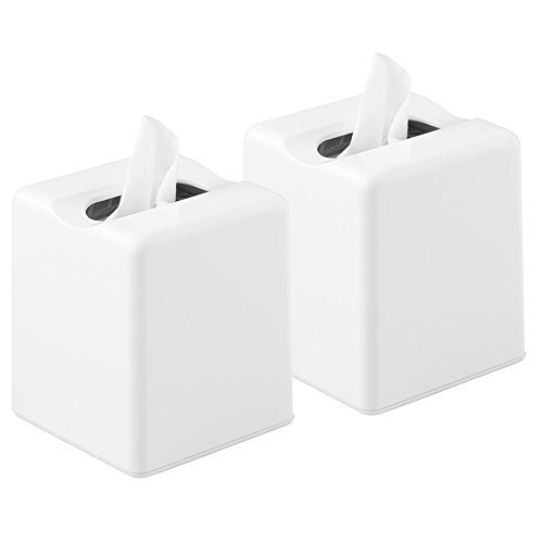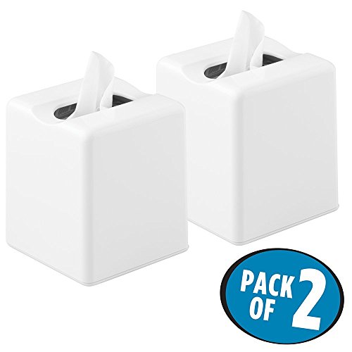 mDesign Facial Tissue Box Cover/Holder for Bathroom Vanity Countertops - Pack of 2, White
