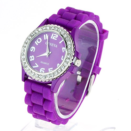 -. Title : Geneva Womens Silicone Round Rhinestone Bezel Pop Color Round Analog Wrist Watch Purple