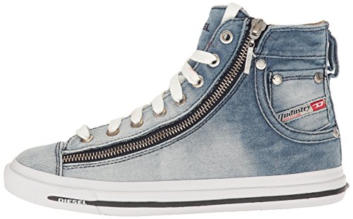 Product DescriptionDiesel magnete expo-zip w denim fashion sneaker with unique pyramid studded outsole and tye dye upper and functional zipper detail.0