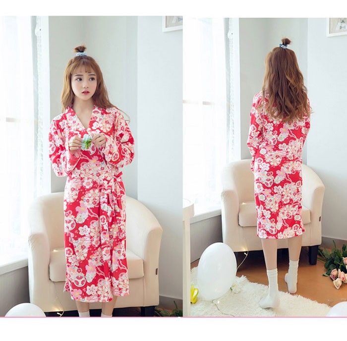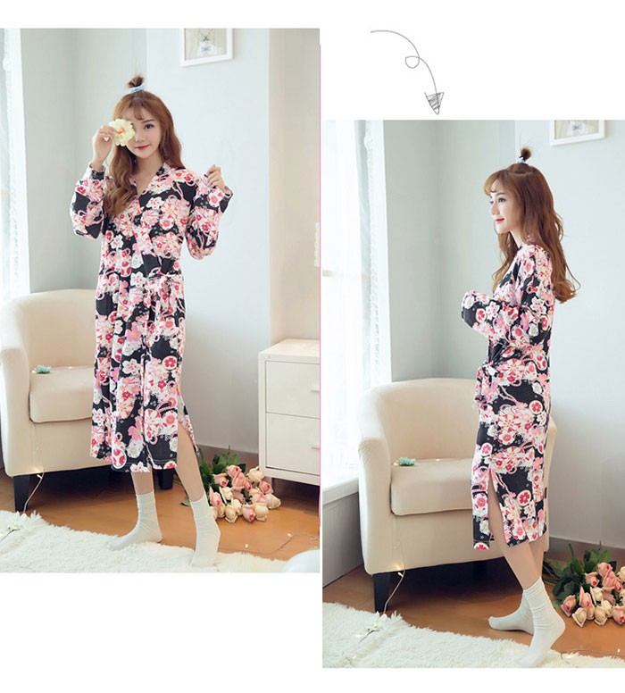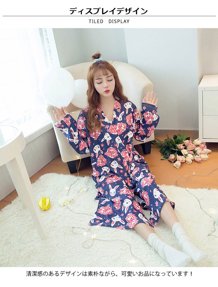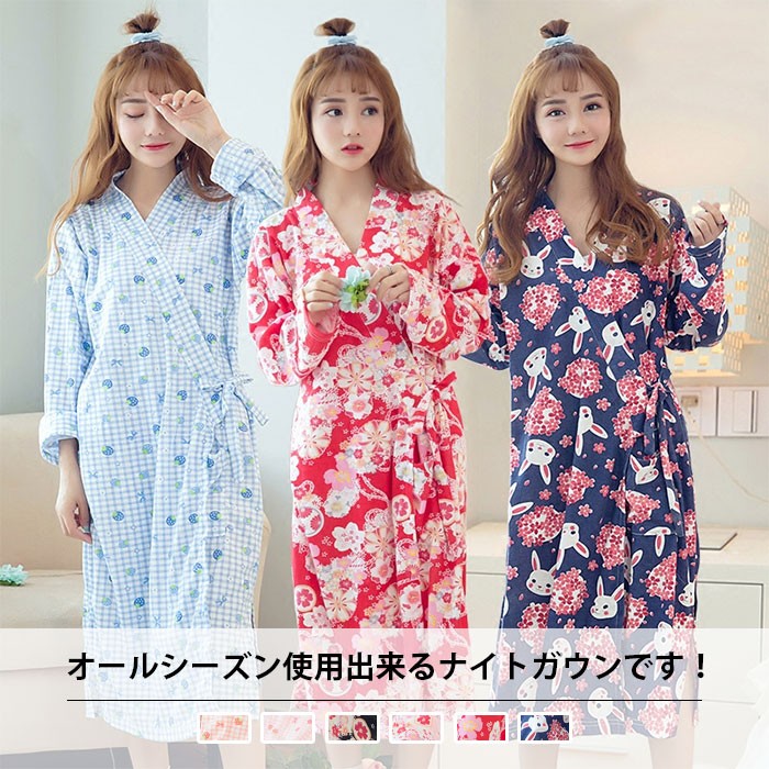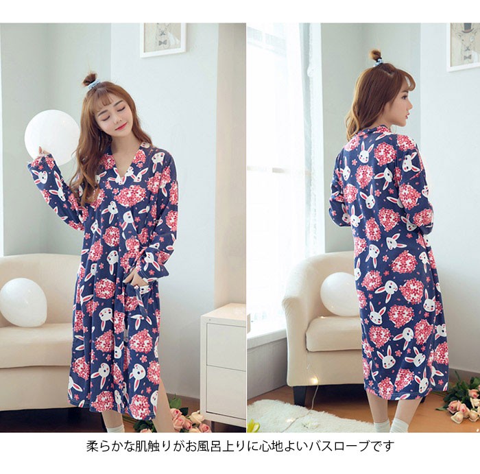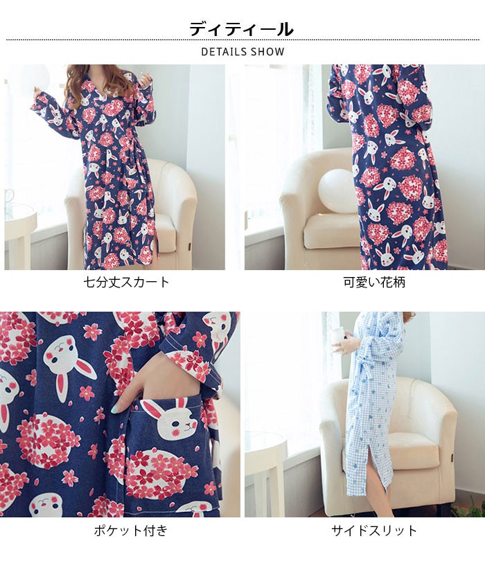 | 商品名 | バスローブ パジャマ ナイトガウン ルームウェアー レディース 長袖 七分丈スカート ワンピース 花柄 可愛い 和風 前開き 春夏 オシャレ 部屋着き |