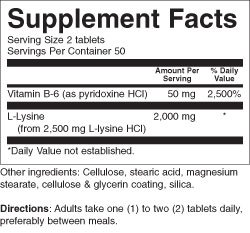 -. Binding : Health and Beauty -. Brand : Country Life -. EAN : 0015794013112 -. Feature : Terrific immune system support / An essential amino acid for regulating certain immune responses / 1,000 mg of l-lysine per tablet fortified with 25 mg of B-6 -. IsAdultProduct : 0 -. Label : Country Life Vitamins -. Manufacturer : Country Life Vitamins -. MPN : 015794013112 -. PackageQuantity : 100 -. PartNumber : 015794013112 -. ProductGroup : Health and Beauty -. ProductTypeName : HEALTH_PERSONAL_CARE -. Publisher : Country Life Vitamins -. Studio : Country Life Vitamins -. Title : COUNTRY LIFE VITAMINS L-LYSINE 1000MG W/B-6, 100 TAB -. UPC : 015794013112