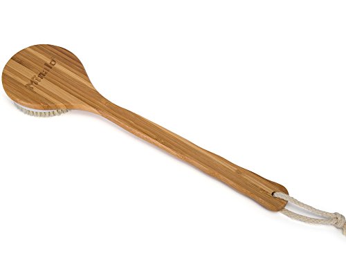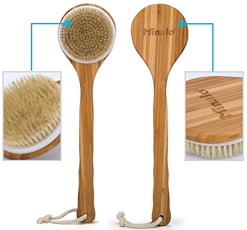 Minalo Best Bath Dry Body Brush -Natural Boar Bristles Shower Back Scrubber With Long Handle for Cellulite, Exfoliation, Detox