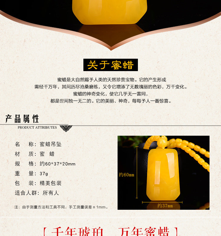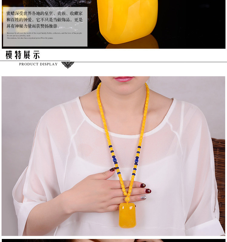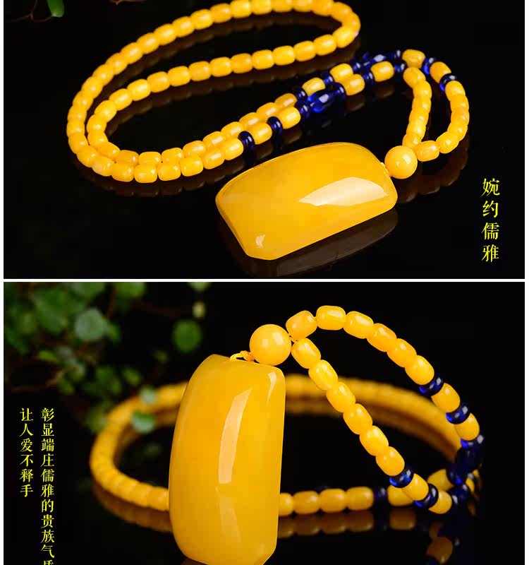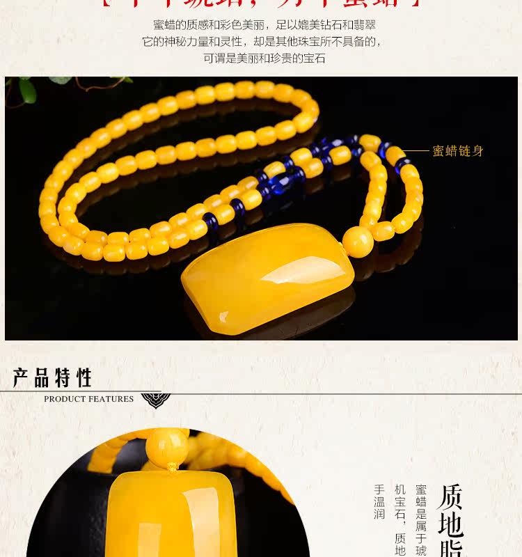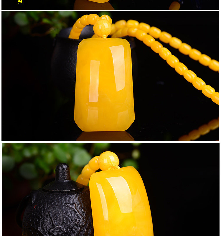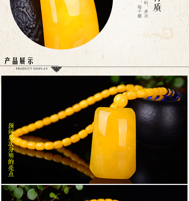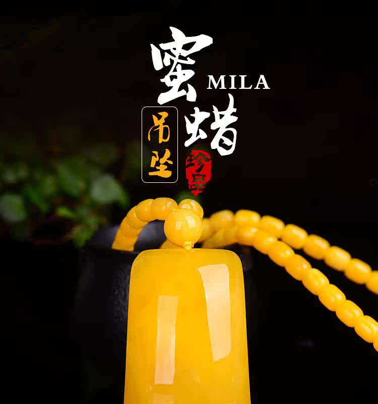 老蜜蜡吊坠 鸡油黄蜜蜡无事牌吊坠毛衣链项链琥珀吊坠女款