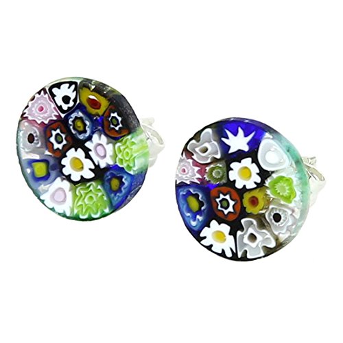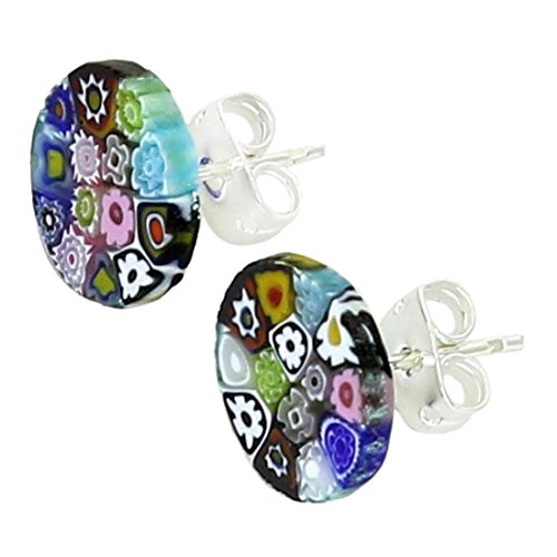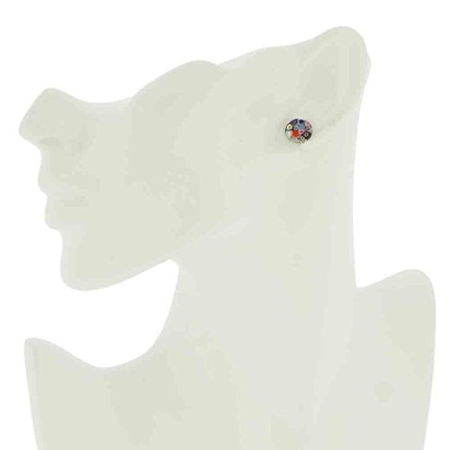 Our exquisite Murano Glass stud earrings feature rich colors and a beautiful pattern of stylized millefiori flowers. Coming to us straight from Venice, these Murano earrings handcrafted in ancient Millefiori technique demonstrate the rare blend of skill and talent that made Murano glass masters famous since the middle ages. These elegant Murano earrings will add a touch of sophistication and warmth to any outfit, especially when paired with one of our classic Millefiori pendants. The Millefiori studs come with an attractive velvet pouch and a certificate of authenticity.