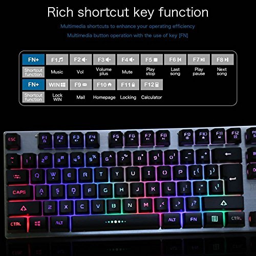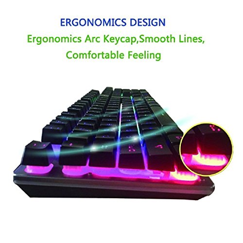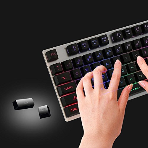 【Delicate appearance】Arcuated Double injection ABS keycaps design, effectively reduce hand fatigue, feel more comfortable, the characters never fade. Not a mechanical keyboard, but tones clear, feels good, user experience is similar to mechanical keyboard.
