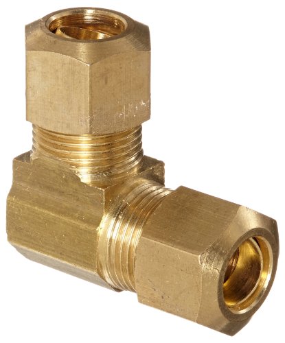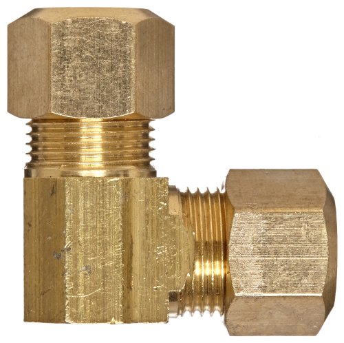 Anderson Metals 50065 Brass Compression Tube Fitting, 90 Degree Elbow, 3/8" x 3/8" Tube OD