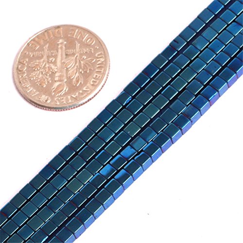 2mm Cube Blue Metallic Coated Hematite Gemstone Loose Beads In Bulk For Jewelry Making Wholesale Beads One Strand 15 1/2" (2mm/Cube)
