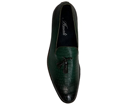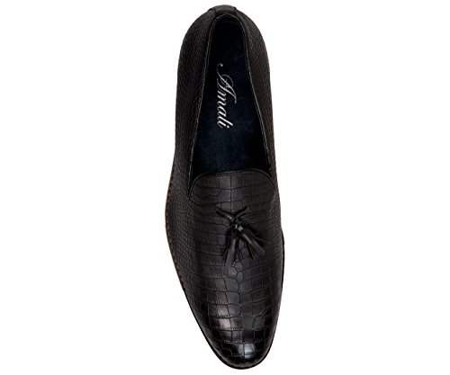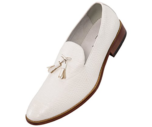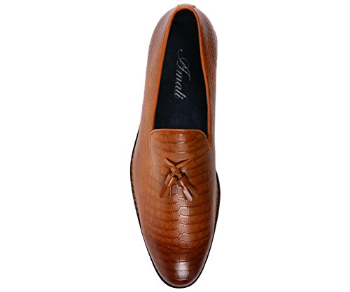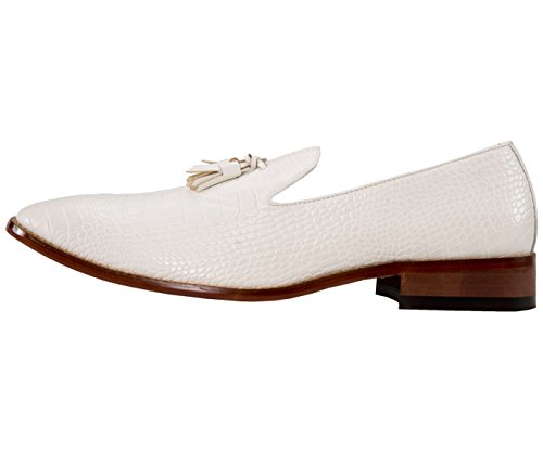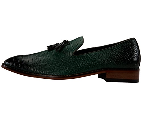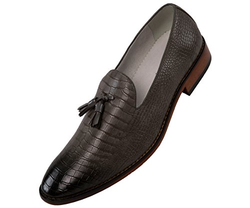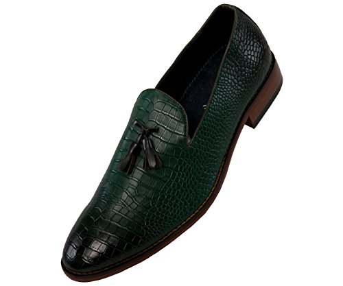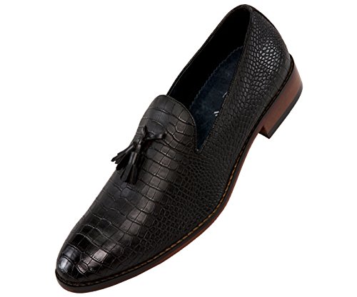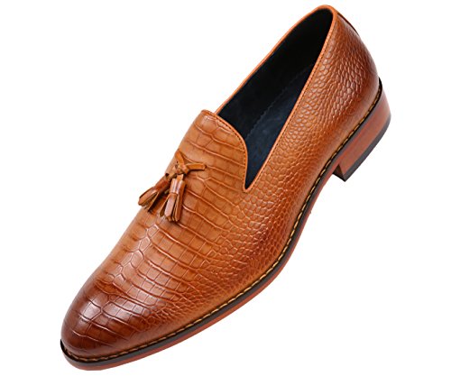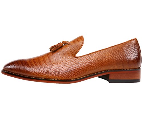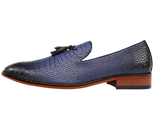 Binding : Apparel Product Description A exotic take on a classic mens tassel loafer style, these crocodile printed dress shoes are sure to be noticed. A faux croco printed upper with burnished detailing takes these timeless smoking slippers from basic to bold. Pair with a casual or dressy ensemble to create a complete, statement-making look. The exotic nature of these shoes makes them ideal for special events, such as New Year's Eve, holiday parties, date night, clubbing, or any other festive occasion where making an impact with your outfit is key. A low block heel makes these shoes as comfortable as they are stylish-they're perfect to wear again and again.These slip-on shoes run true to size, so select your normal size when ordering. Their comfortable construction makes them easy to break in and wear right out of the box. This sought-after style is available in Black, Tan, Navy Blue, and Olive Green, so you can easily coordinate with all your favorite looks. Add this one-of-a-kind silhouette to your closet, and let the compliments roll in. 0
