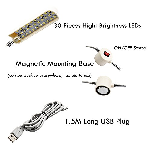 5V USB LED Sewing Light, Lustaled 30 Daylight LEDs Flexible Working Gooseneck Lamp, With Magnetic Mounting Base, ON/OFF Switch for All Sewing Machine, Desk, Lathes, Music Stands, Drill Presses