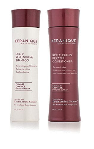 - Keranique Scalp Replenishing Shampoo and Replenishing Keratin Conditioner Set is designed to protects both the cuticle and the fiber core and penetrates and hydrates even the driest hair types to transform coarse, dull and/or damaged hair into soft, smooth fiber.
