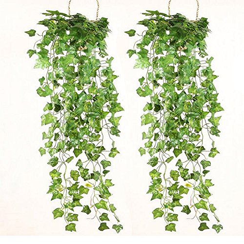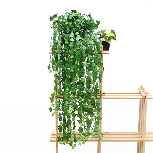 90 CM Real-tuch Artificial Green Ivy Vine Plants Hanging Leaves For Home Room Garden Wedding Garland Outside Decoration 2Pack Sweet Potato Leaves