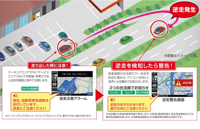 高速道路での逆走をダブルでお知らせ