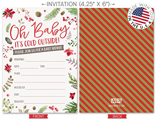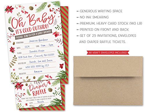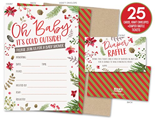 Baby It’s Cold Outside Winter Baby Shower Invitations and Diaper Raffle Tickets with Winter Florals. Set of 25 Fill In Style Cards, Kraft Envelopes, Raffle Tickets