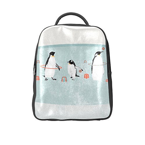 -. Brand : YiMao -. Color : Black -. Department : womens -. EAN : 6922657712782 -. Feature : 22.75 Oz. Made from high-grade PU leather, durable and fashionable / Dimensions: 12.2"(L) x 4.9"(W) x 15.7"(H) / Padded back, adjustable leather shoulder straps / The main compartment has a laptop sleeve / Lined interior features front-wall zippered -. ProductGroup : Apparel -. ProductTypeName : LAGE -. Size : One Size -. Title : YiMao Funny Penguin Women Leather Backpack Casual Daypack Simple Shoulder Bag