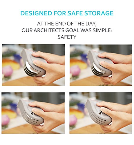 INNOVATIVE DESIGN FOR SAFE STORAGE - Protects you and your loved ones from getting cuts. Compared to other unsafe mincers where the blades are always exposed, our completely redesigned mincer fully secures the blades inside with a simple press and slide of a button when not in use.