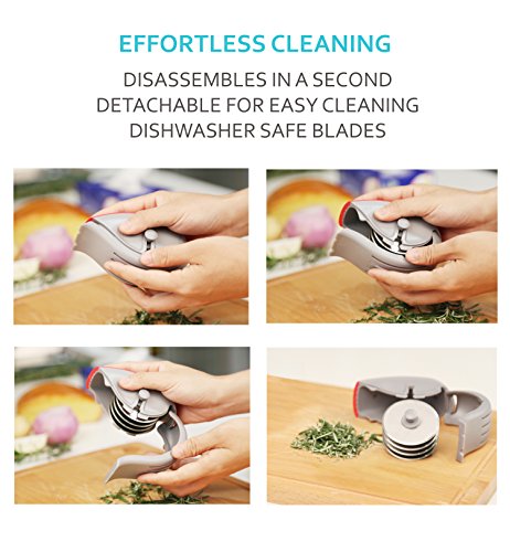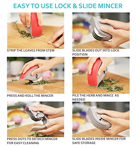 MINCE CUT CHOP HERBS LIKE A CHEF - Our remarkable All-New Lock & Slide Mincer is guaranteed to turn you into a chef. Imagine finely minced parsley on top of your pasta or preparing a chopped kale salad, yes its possible with our super sharp stainless steel rolling blades that ensure you get a great cut every time you roll the mincer.