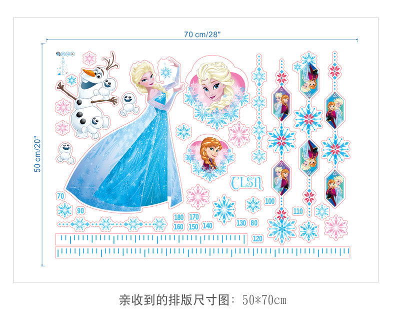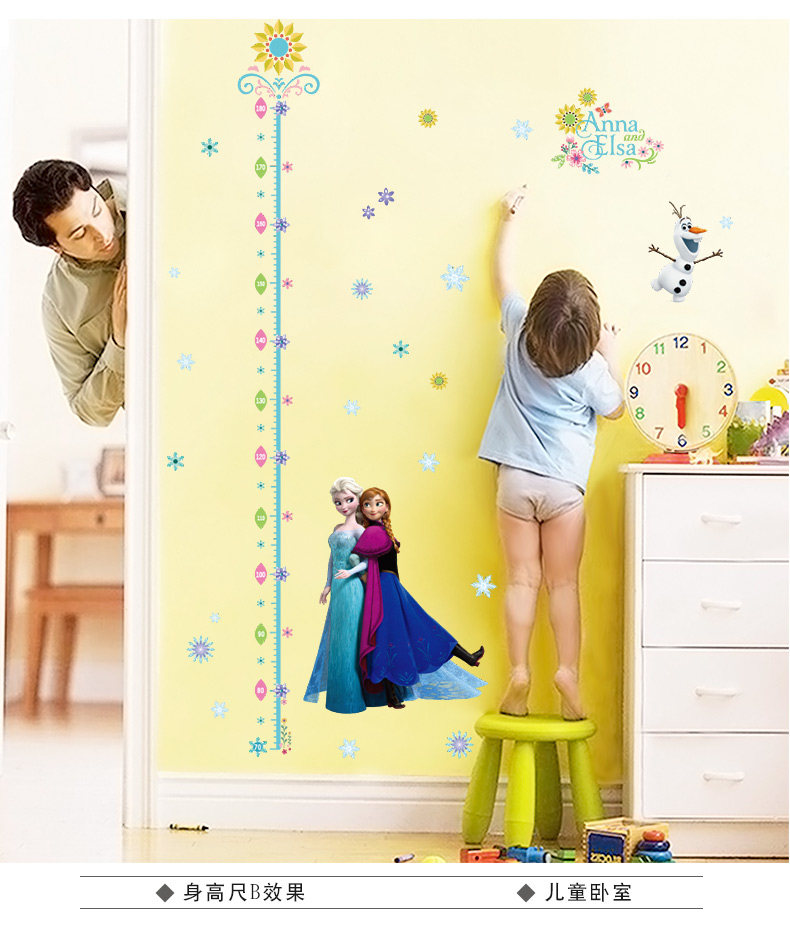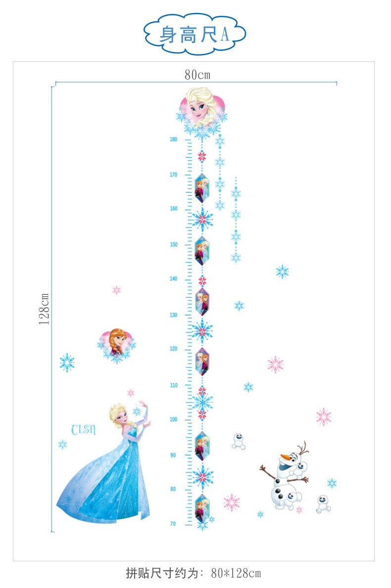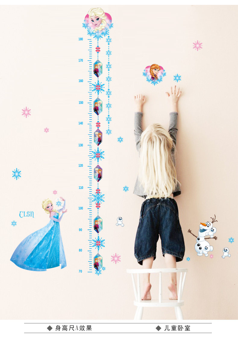 正品冰雪奇缘卡通婴儿早教身高贴儿童房记录身高环保墙贴