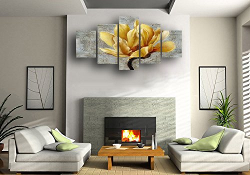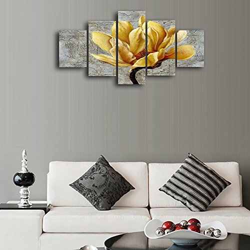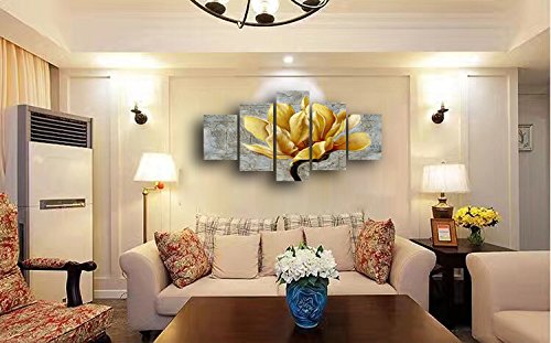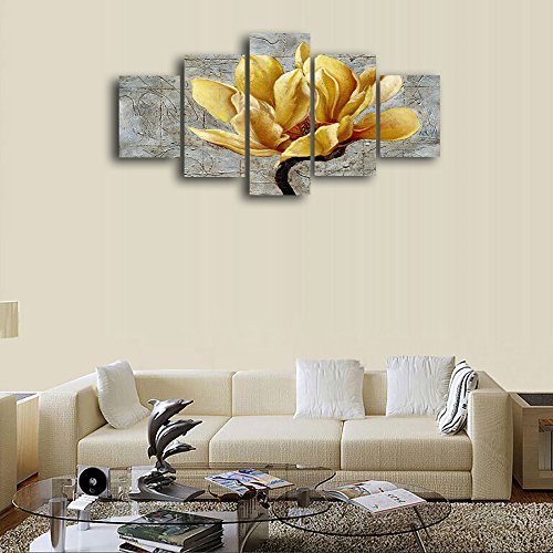 -. Title : Yellow Flower canvas wall art abstract P.R.Int home decor for living room modern contemporary pictures 5 panel large poster HD P.R.Inted painting Framed Ready to hang