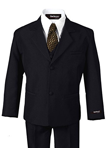 High Quality Tailored made Suit set This suit is perfect for Weddings, and any special occasions. Brand new with tag, brand name designer 5 piece suit set, in dark black, and white shirt with high quality adjustable tie. Included in this listing: * Single Breasted Jacket w/Notch lapel * White Shirt * Fully Lined Vest * Pants with elastic back for easy fit * Adjustable quality Tie, wrap around the neckFeature
