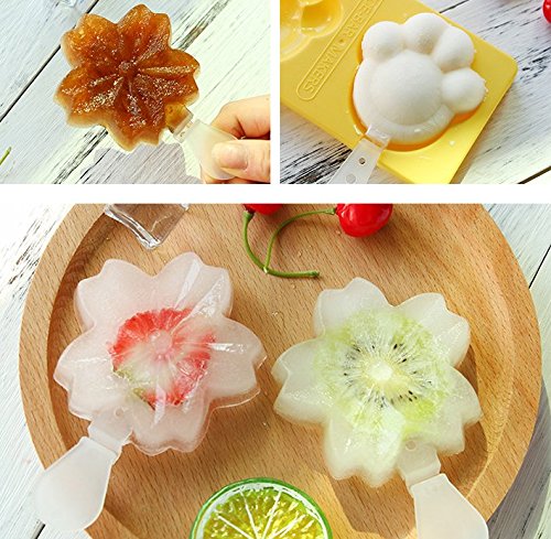 DAIWEIS Popsicle Molds Popsicle Maker Ice Pop,Lovely Cherry Blossoms and Cat Claw Patterns ,Molds BPA Free with Lid Set of 2