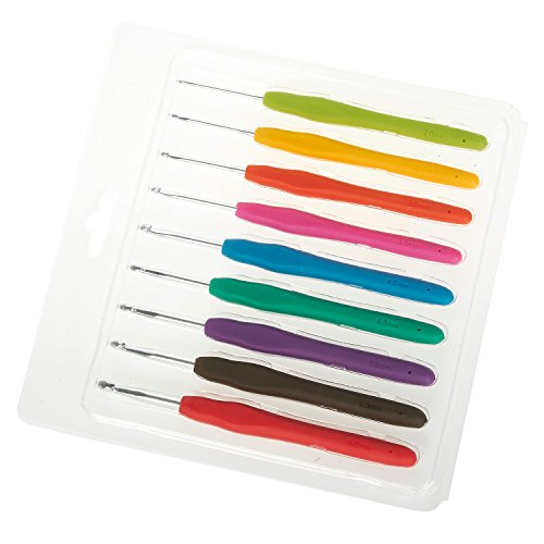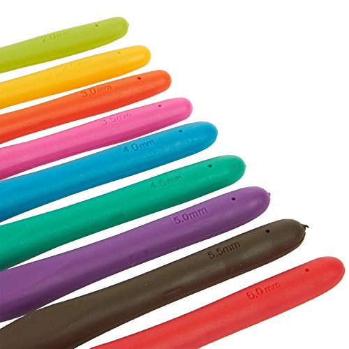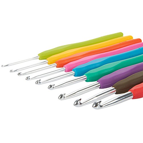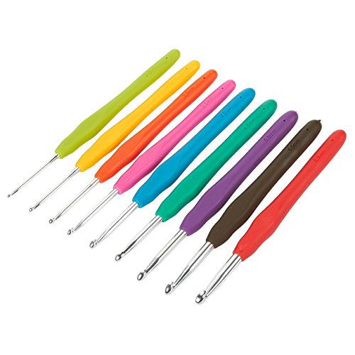 - COLORFUL: Full set includes 9 different sized Crochet Hooks with different color silicone handles. The handles comes in red, brown, purple, green, blue, rosepink, orange, yellow and lawn green