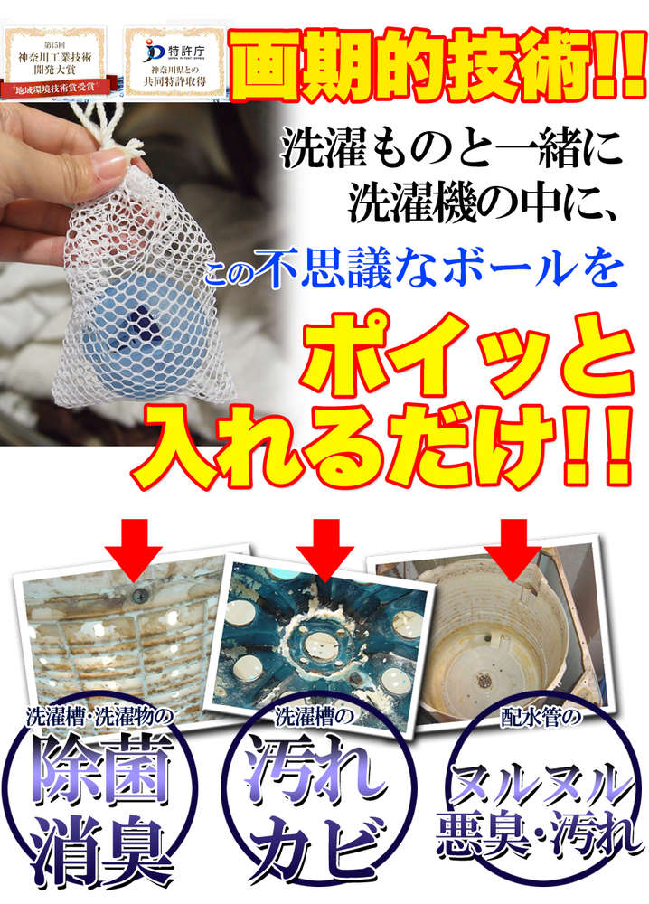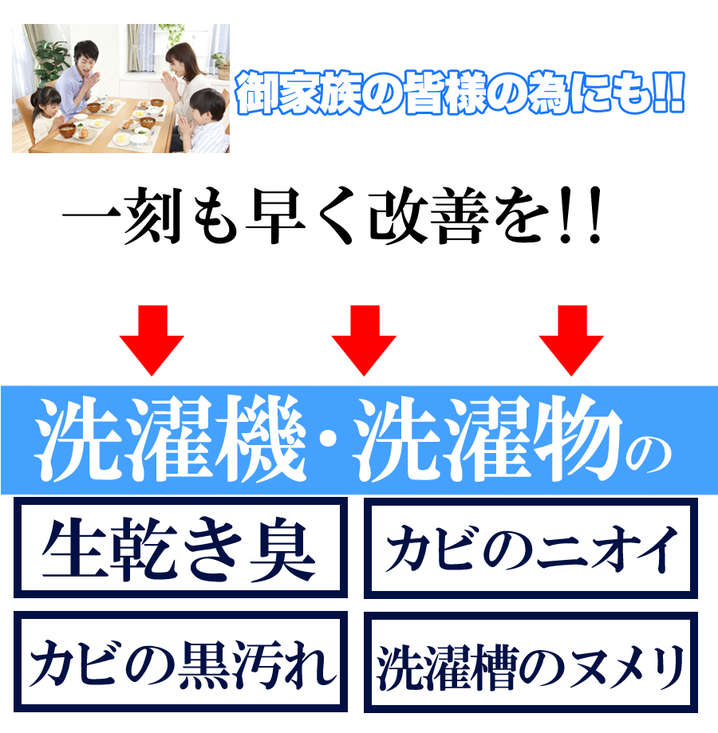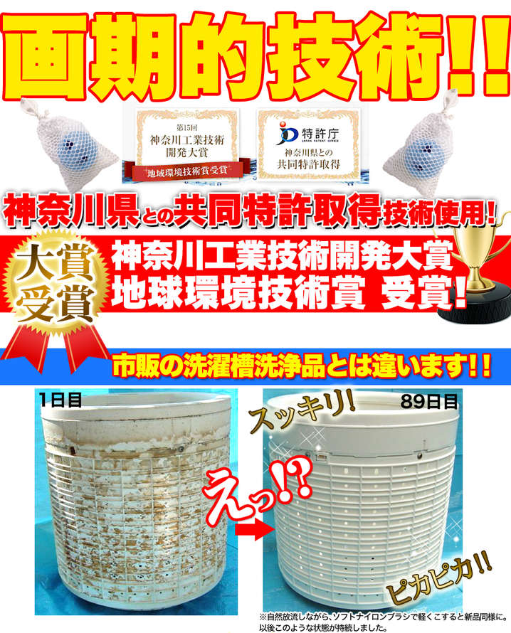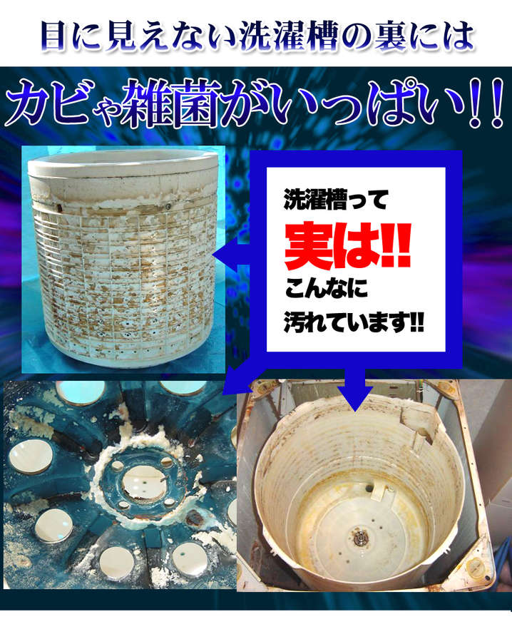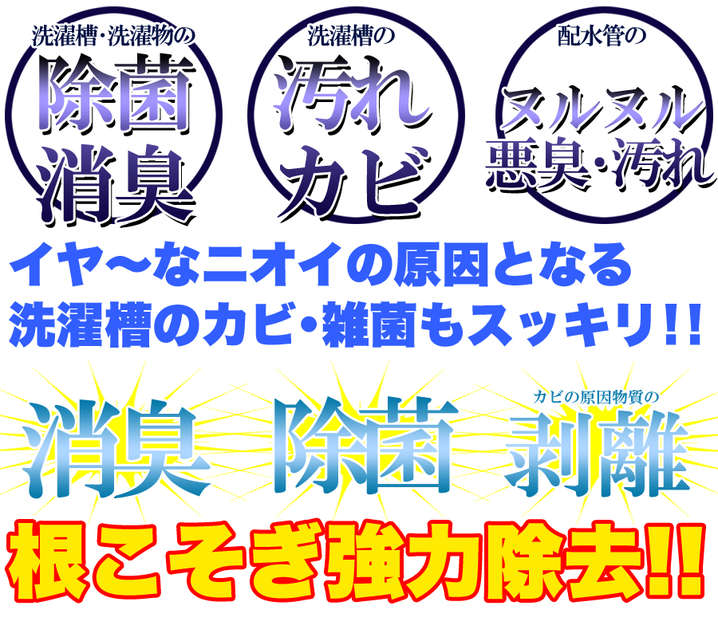 ●洗濯機槽外周のしつこい汚れ・カビの原因物質の剥離、悪臭を防止します。