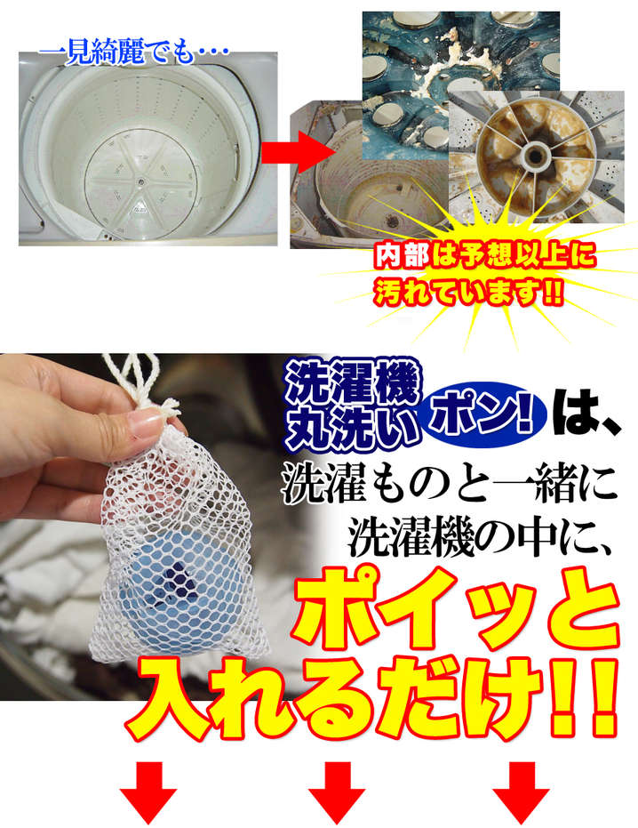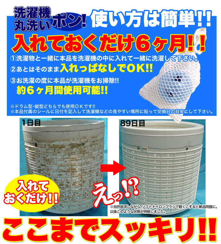 ●洗濯物および洗剤と一緒に入れて、ご使用ください。終了後は入れたままでかまいません。