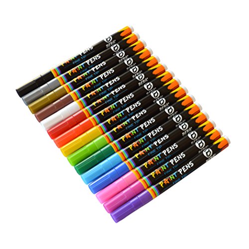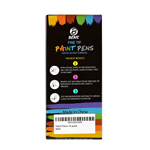 Beric Premium Paint Pens 15 pack, Water-based, Marker, Fine Tip, Writes on Almost Anything, Water and Sun Resistant Vibrant Colors Low Odor Long Lasting, Fast Drying Assorted Colors