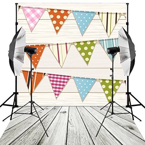 Kooer 5X7ft Small Childrens Bunting on Wooden Wall Photography Backdrops Studio