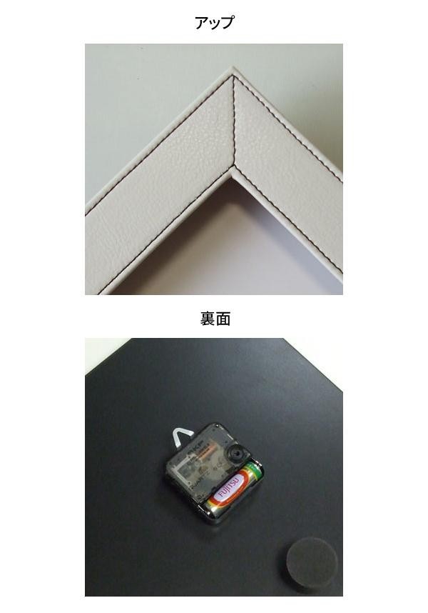 | PUレザーにステッチを効かせたシンプルなひし形の掛け時計。 |